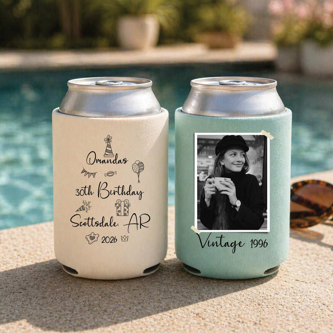 Custom 30th Birthday Can Coolers, Personalized Photo & Text Party Favor, Vintage 1996 Beer Sleeve,Birthday Drink Bottle Holder